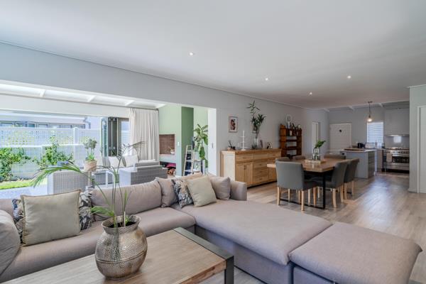 The enclosed patio is the standout of the home. Designed for year-round use, the full stacking doors open completely on both sides, allowing the space to transform from a cosy indoor lounge into an open entertainment area overlooking the garden and pool. From here, parents can comfortably supervise children playing outdoors, enhancing both practicality and peace of mind.