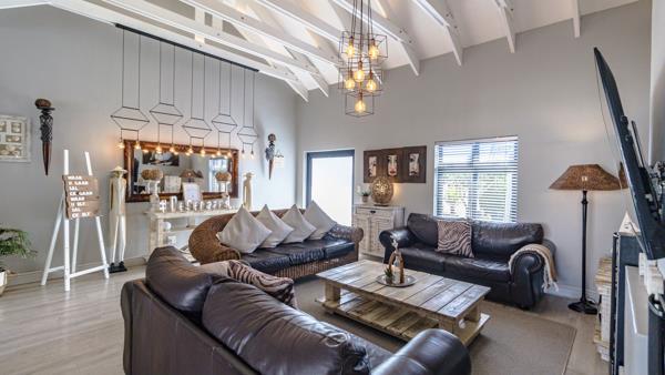 Two spacious lounges offer flexibility, with one featuring a built-in braai, perfect for relaxed gatherings.