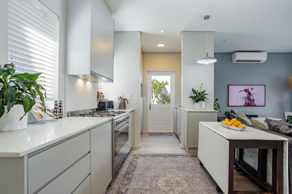This modern single storey, lock-up-and-go two-bedroom home in Le Parc Estate, Paarl, offers the perfect blend of style, convenience, and security.