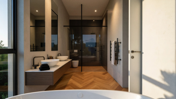 Contemporary Design: The home showcases modern living with contemporary architecture, accentuated by vinyl herringbone floors and striking timber cladding feature walls, creating a warm and inviting atmosphere. Ample Parking: With 3 garages, parking will never be an issue, providing convenience for multiple vehicles or extra storage.