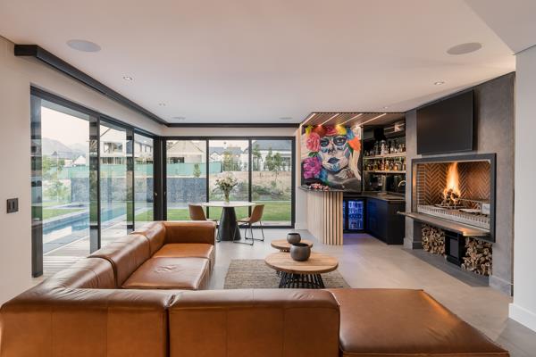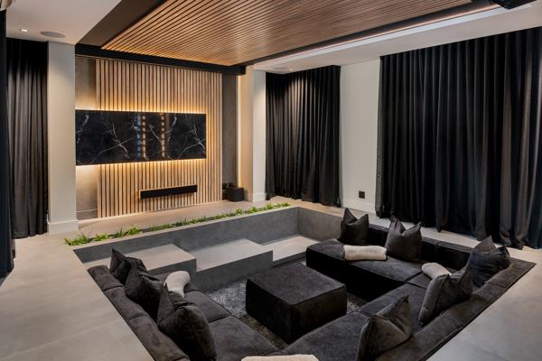 A server cabinet in the garage ensures that all devices, including TVs, can be managed seamlessly with no visible wires or decoders. The home is also fitted with a solar system, offering the potential to go off-grid. The bathrooms showcase OXO sanitaryware and fountain taps, adding a touch of elegance. For added convenience, USB and USB-C outlets are installed in the kitchen and all bedrooms, while automated features such as blinds in the braai room and master bedroom can be controlled remotely. The home also includes a wine display cabinet, custom-designed built-in couches in the sunken lounge, wine fridges in the scullery, and an ice machine and bar fridge in the bar areaall enhancing the homes appeal as an entertainers dream.