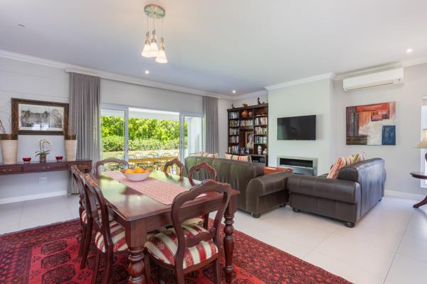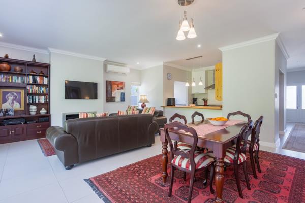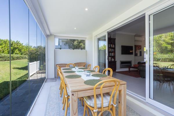 The open-plan living area includes a modern kitchen, dining space, and TV lounge with a cosy gas fireplaceideal for relaxed entertaining. The enclosed patio, fitted with elegant frameless stacking doors and a built-in braai, creates a seamless indoor-outdoor flow all year round. Featuring three bedrooms and two bathrooms main en-suite, plus a double garage, this home delivers easy luxury and peace of mind within the sought-after Val de Vie Estate.