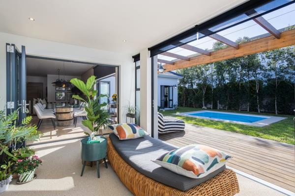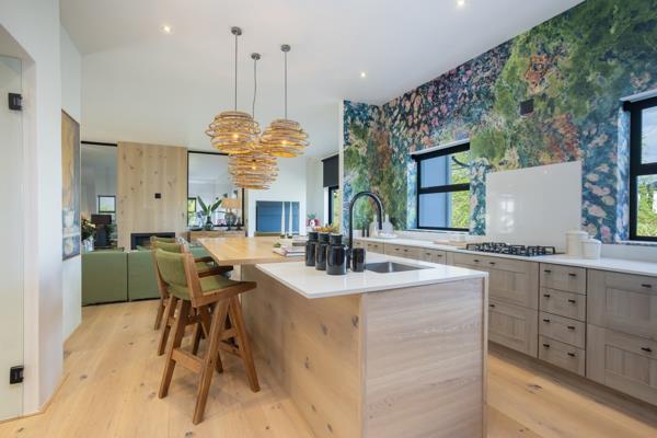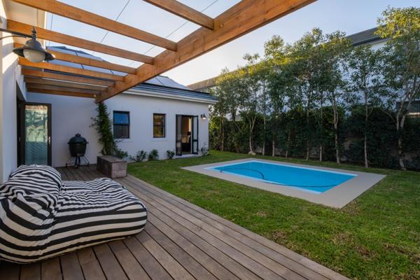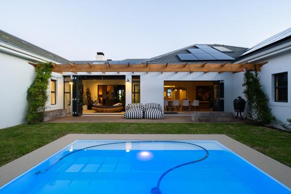 A welcoming sequence of double glass doors and a feature oak door introduces elegant, light-filled interiors. The open-plan living spaces offer easy, free-flowing living and transition effortlessly to a private garden and pool a seamless setting for relaxed family moments and effortless entertaining.