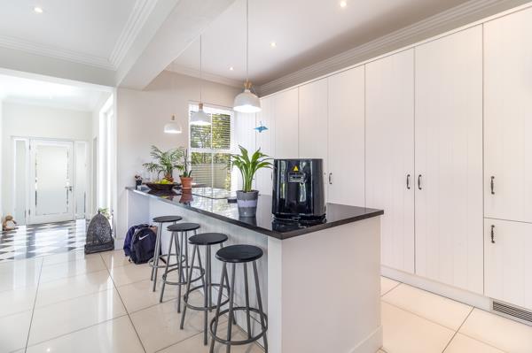 EXCLUSIVE DUAL MANDATE. This charming four-bedroom family home offers classic styling and lovely views towards the Simonsberg Mountains. The well-sized kitchen features a large island, ample cupboard space, and a separate scullery, flowing into open-plan living and dining areas warmed by a gas fireplace. An enclosed entertainment area with built-in braai opens via stacking doors to create easy, free-flowing living.