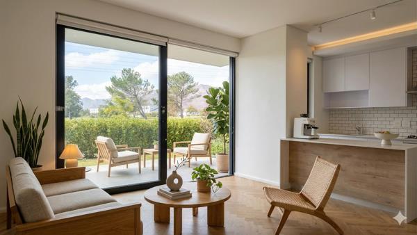 Conceptualised by renowned architect Stefan Antoni, the apartment embodies a refined urban sensibility, perfectly balanced by the natural beauty of the surrounding Paarl-Franschhoek Valley. Here, panoramic views of the Simonsberg and Drakenstein mountains set the tone for a lifestyle defined by serenity and scenic splendour.