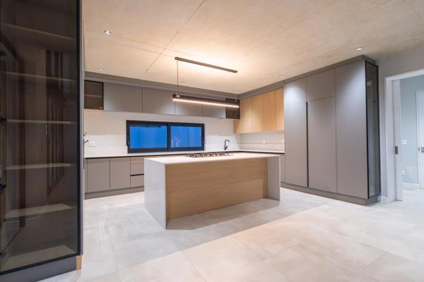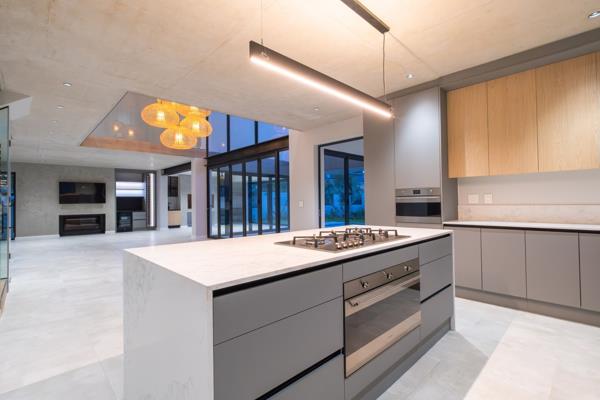 The modern kitchen is both functional and striking, complemented by refined display shelving and effortless flow to the entertainment spaces. A built-in braai area and statement wine display add to the homes entertaining appeal.