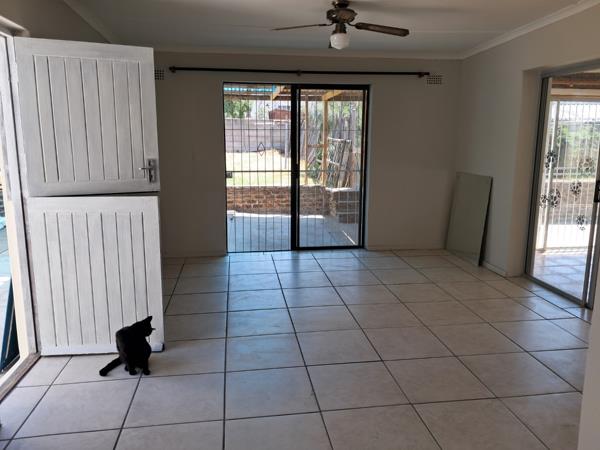 The interior boasts an inviting entrance hall leading to the newly renovated kitchen, open plan dining room and braai room/ family room and it also leads out to the covered patio at the rear also with another built in braai. On the left you will find a spacious storage room. Both the 4 bedroom home and the flatlet have its own spacious garden. The flat consists of an open plan living area/kitchen, large bedroom and en-suite bathroom.