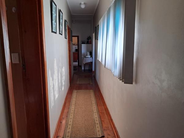 Don,t miss out on this secure family home priced to sell. When you enter his home, you will find a family room with a fireplace and ceiling fan leading to the dining room and country style kitchen with plenty of built in cupboards. On the left you will find the passageway with linen cupboards that leads to the 3 bedrooms with ceiling fans and with built in cupboards, a full bathroom and a separate guest toilet.