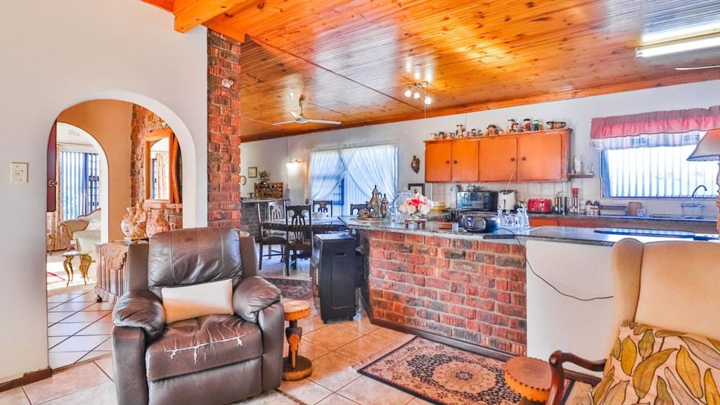 The well-sized open plan family room, dining area with a built-in bar and a spacious kitchen that you can dance around in, featuring ample cupboard space, work surface and a breakfast nook. A separate laundry and scullery is conveniently tucked away out of plain sight. A bright and sunny lounge is situated on a separate wing of the house. 4 Bedrooms (each with built in cupboards) are served by 2 bathrooms. The 4th bedroom has been transformed into an office. The master bedroom boast an en-suite bathroom.
