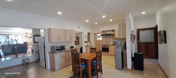 The welcoming foyer sets the tone for this inviting home, leading into a cozy formal sitting area. The spacious, open-plan dining and breakfast nook effortlessly connects to the modern kitchen, which boasts a built-in hob, undercounter oven, and extractor fan. A large, easily accessible pantry completes this thoughtfully designed space.