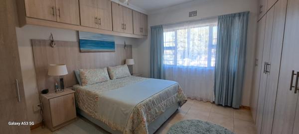 The main bedroom is a sanctuary of comfort, featuring a sleek walk-in shower, stylish dressing table, and abundant cupboard space.