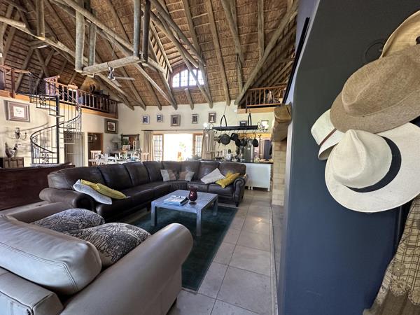 Each en-suite bedroom is a private retreat, and two large loft spaces provide flexible options for a studio, home office, or fourth bedroom. The home opens to an indigenous garden with tranquil duck ponds, water features, and a salt-chlorinated poola serene escape beneath wide Karoo skies.