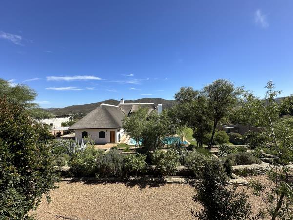 This exquisitely designed three-bedroom, four-and-a-half-bathroom home rests on a 2 400 m2 terraced erf in Barrydales peaceful upper village, offering a refined balance of sustainable living, modern comfort, and timeless Karoo beauty.