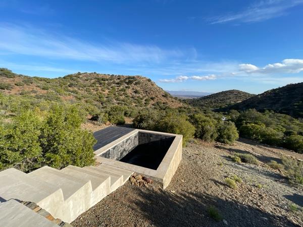 An elevated viewing deck beckons you to soak in sweeping vistas and crisp, open skies. The surrounding Karoo vegetation teems with birdlife, enhancing the homes tranquil charm, while the natural pool offers a refreshing escape under the vast African sun.