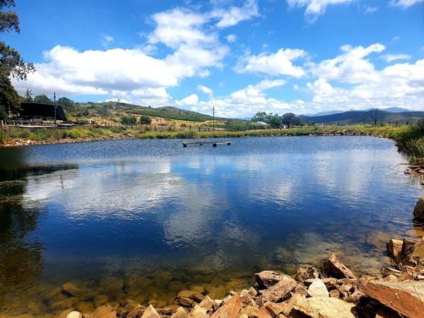 The farm style main dwelling (in need of some T.L.C.) overlooking the river, consists of 3 bedrooms, 2 bathrooms (one en-suite), immaculate kitchen and lounge area. There are 5 labourers cottages and no life-rights. These cottages can easily be converted into popular farm guest cottages, which tourists absolutely long for. There are 2 barns, big enough for your farming activities and equipment. Horse, cattle and sheep farming are definitely an option. Not to mention Tourism.