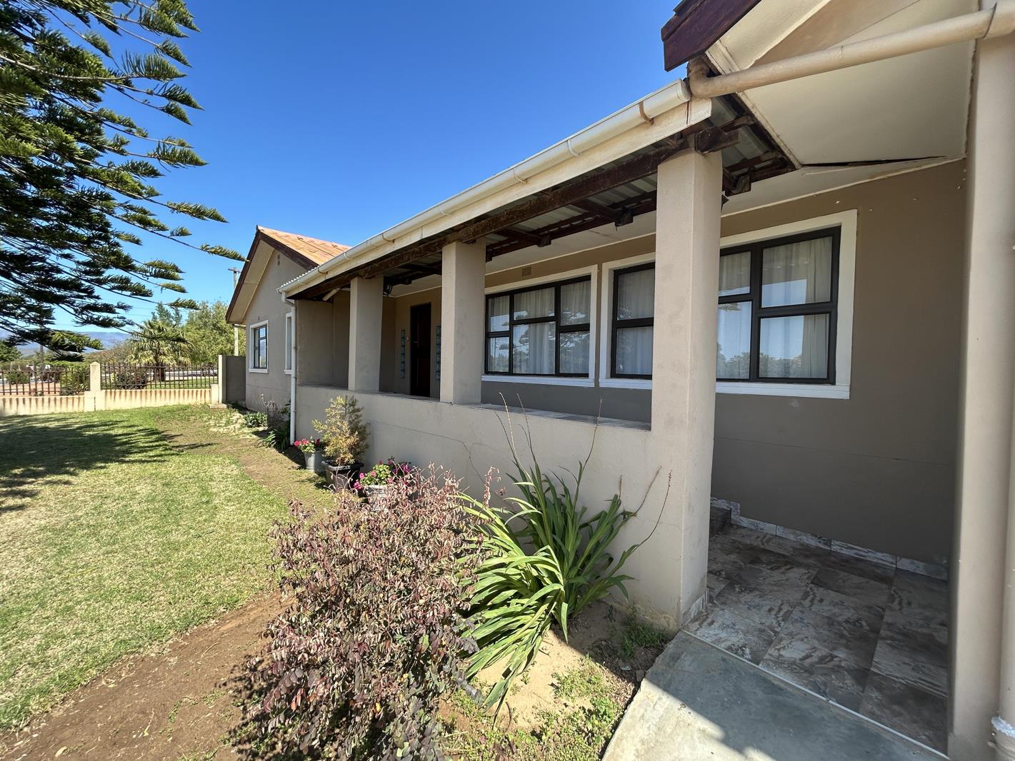Discover the perfect blend of comfort and security with this charming family home situated next to the Jakes Gerwel Technical school in Bonnievale. The property boast with 4 bedrooms that are very spacious and offers build in cupboards in the rooms. When entering the front door of the property you get the living room with ample of space for family gatherings and cozy winter evenings with the build in fire place.