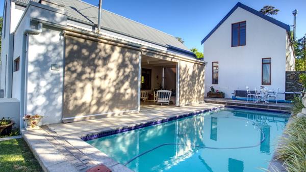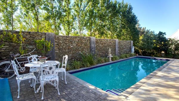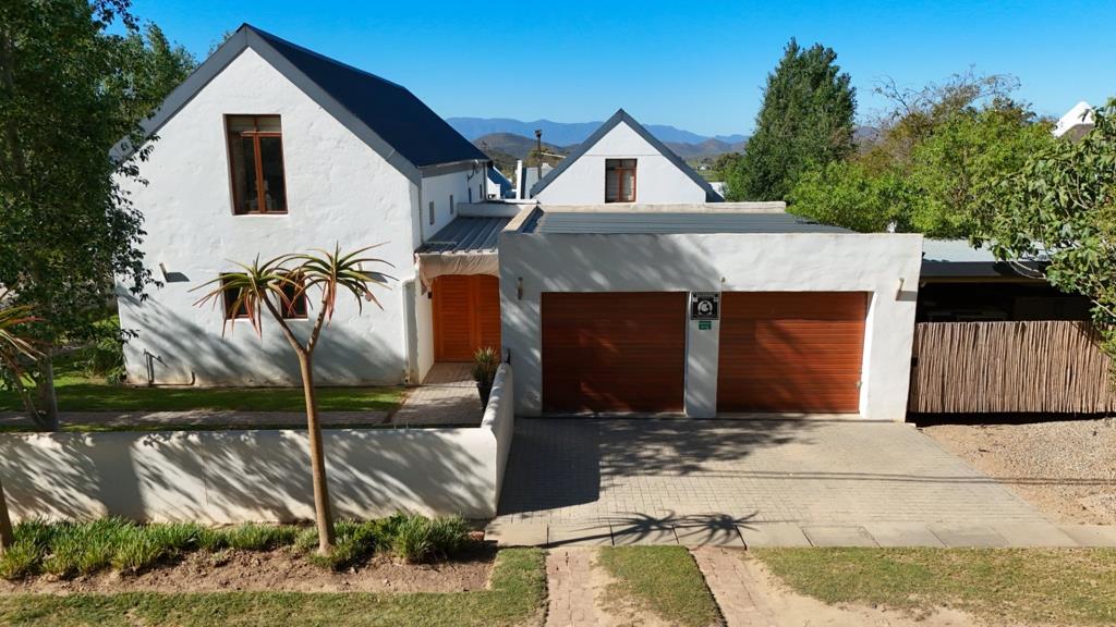 The house presents a modern take on Karoo-Victorian architecture, in line with the guidelines of the McGregor Heritage Society, ensuring both style and long-term appeal. Designed for entertaining, it boasts three living areas, a dining area, and an open-plan kitchen. Two living rooms have slow-combustion stoves for cozy winter evenings and double-volume ceilings with exposed trusses for an airy feel.