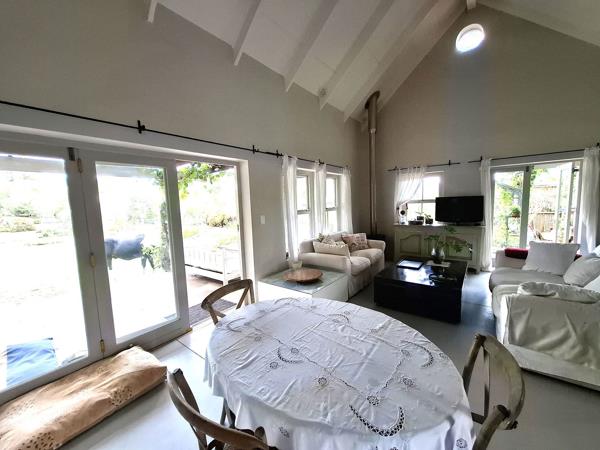 Entering this cottage you immediately feel at home and will go whow walking into the open plan, dining, living area with a cosy little wood-burner stove, and step out through glass stacking doors, onto a covered patio, where you can enjoy your early morning cup of coffee or a sundowner, listening and watching the early morning birds.