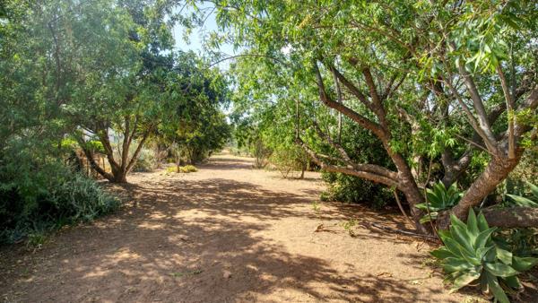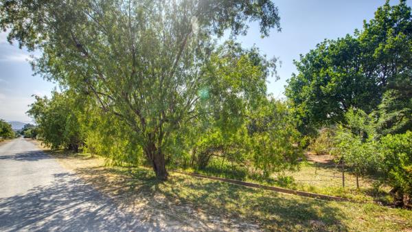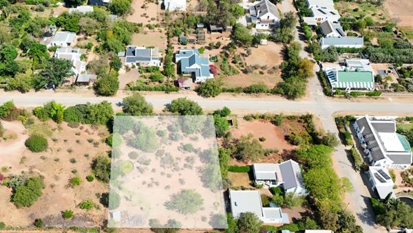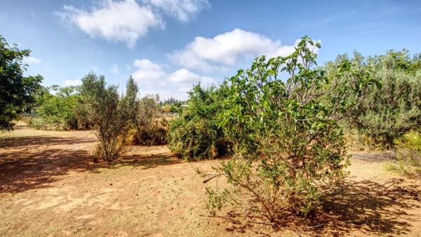 The property includes a borehole with partial irrigation, is fully fenced, and is equipped with existing water and electrical connections. Additionally, mature fruit trees and indigenous species such as Karee are already established on the site.
