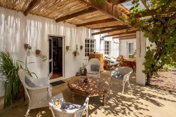 Discover this stunning, expansive home situated in one of the most desirable addresses in McGregor, offering a perfect sanctuary for a large extended family or an income-generating property. Currently run as a guest house, this unique and characterful thatched residence has been lovingly renovated and thoughtfully developed, featuring three double en-suite bedrooms that exude elegance and comfort. The spacious living room with a cozy fireplace seamlessly connects to a separate tiled dining area, which is open plan to a large fitted kitchen with a scullery, plus a versatile study with its own outside entrance and an upstairs open thatch living area that could be used as additional bedroom accommodation. The beautifully landscaped large garden boasts a plunge pool, a charming rose garden, a small olive grove, and is irrigated by lei water from a large on-site dam and two boreholes, ensuring lush greenery year-round.Additional accommodation includes a self-contained freestanding one-bedroom cottage with 1.5 bathrooms, a lounge, and a fitted kitchen, complemented by a loft studio apartment accessed via an outside staircase with a bathroom and kitchenette, perfect for personal guests or holiday rental. The property also features a garden cottage ideal as staff quarters or additional rental accommodation, an outside laundry, ample on-site parking for multiple vehicles, and excellent security. Whether you are seeking a family haven or a lucrative guest house, this exceptional property combines charm, space, and prime location in McGregor.