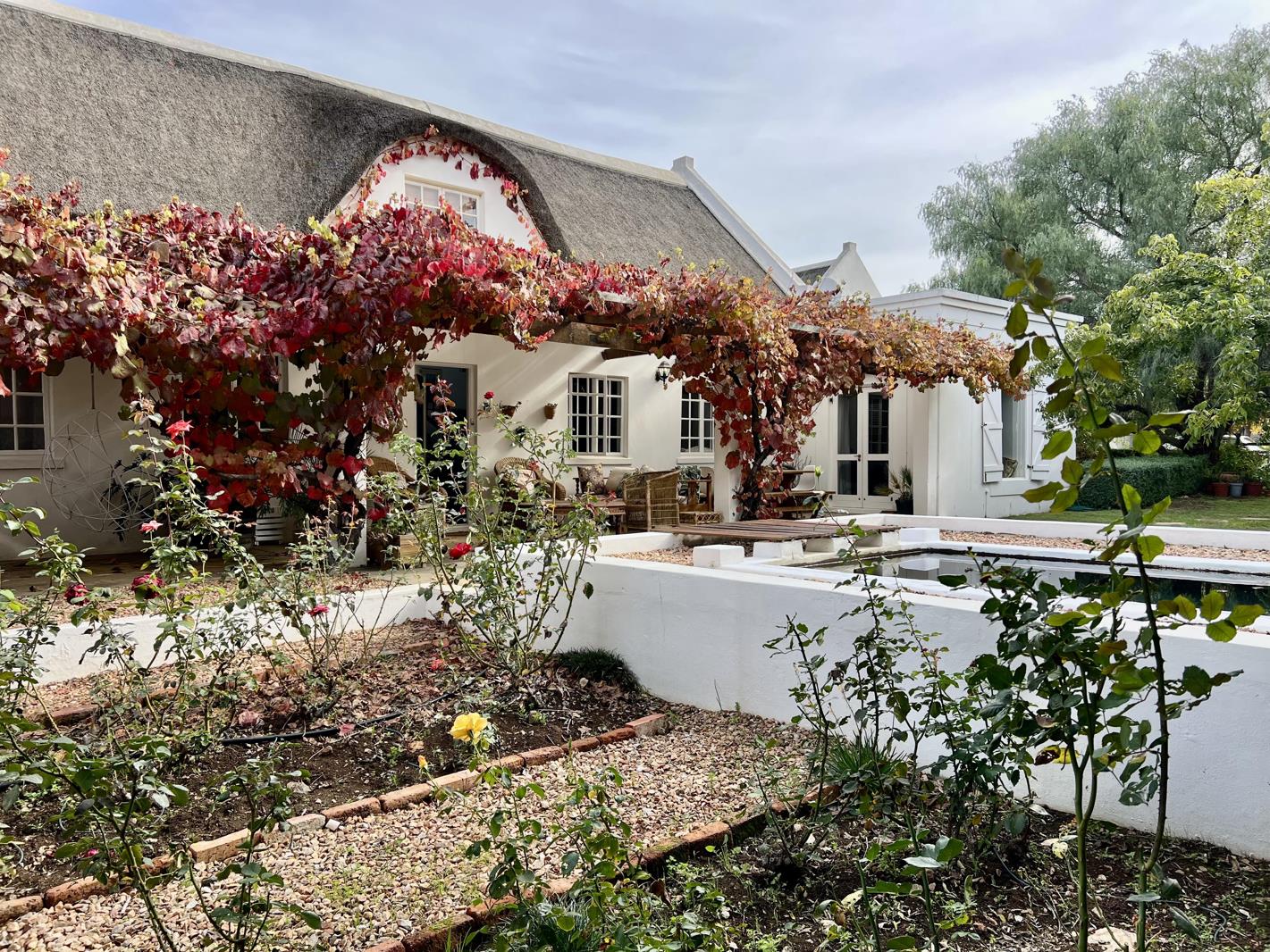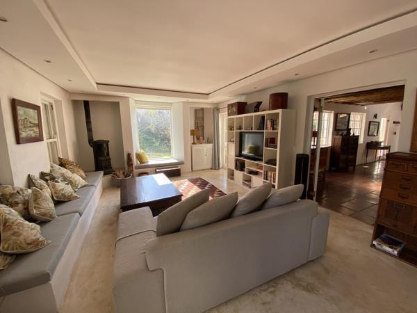 The main house consists of a sunny living room with Godin fireplace for winters and doors to the pool and patio as well as stacking doors to the side patio, making it ideal for entertaining. The reception area opens to a farmhouse kitchen and dining room with study and scullery.