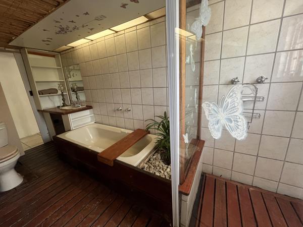 The garden boasts a stunning pool with braai area in the front with shade provided from the established trees. The back garden has a natural pond which can be filled with the leiwater water and make an ideal sanctuary for bird life OR filled in to create a beautiful garden.