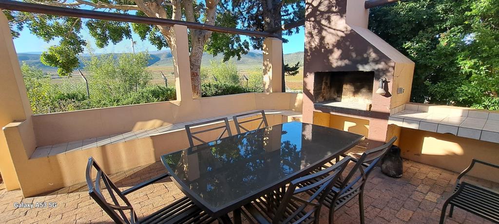 Step out onto the covered patio and braai area to enjoy stunning panoramic farm and mountain views.