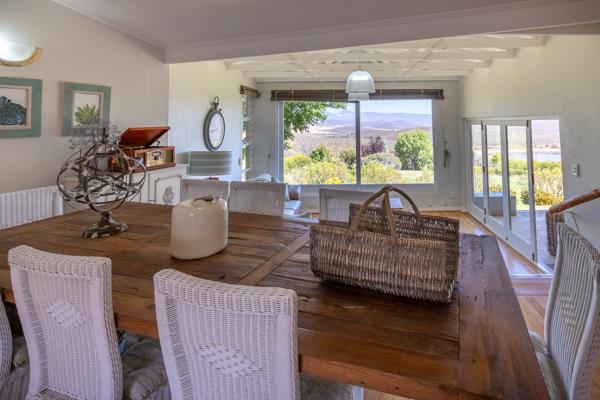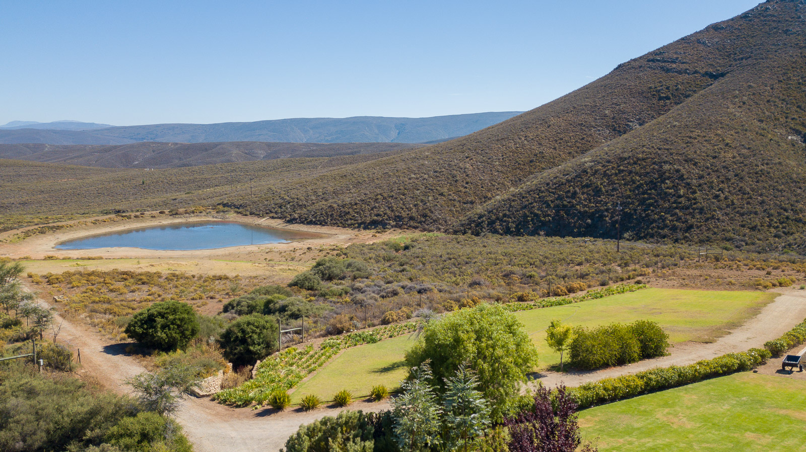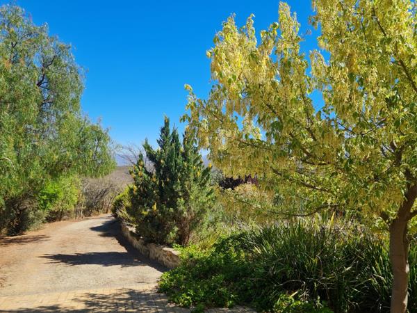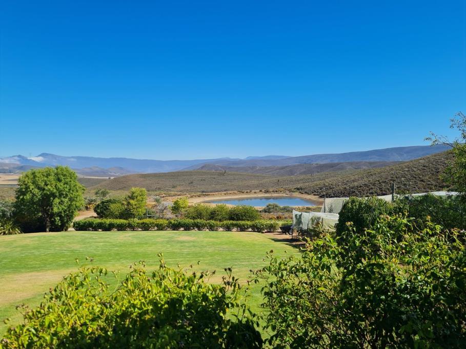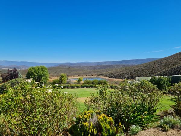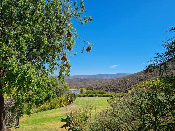 The spacious, well-built farm house is a must to see. The clever design fits in with the surroundings but still, the interior speaks of warmth in winter and cool in summer. It has two bedrooms, both with en-suite bathrooms, well designed fitted kitchen, open plan lounge and entertainment patio. Just to round it all off, separate scullery, walk in pantry and a garage. A cottage with a further 2 bedrooms, with en-suite are included in the package and just a short stones throw away. The cosy fireplace and air conditioning throughout just add to this beautiful homestead. A special feature is the lovely rolling lawn and colourful garden which boasts changes of colour throughout the seasons. The furniture in these dwellings (or part thereof) are also included in the sale.