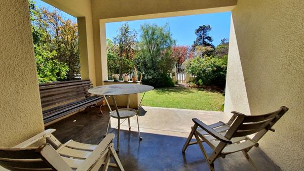 A sunken TV lounge off the kitchen, adds a touch of modern flair and practicality. This kitchen opens onto a covered coffee-veranda that overlooks the lush green lawn and a beautifully maintained garden, with outside braai, offering a peaceful retreat right at your doorstep. The main house includes three generously sized bedrooms, serviced by two bathrooms, ensuring comfort and convenience for the whole family.