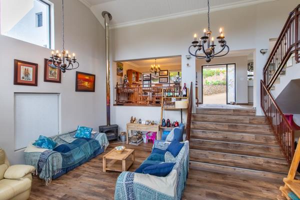 Leading up the staircase, an office space awaits. The master bedroom features a walk-in-closet and en-suite full bathroom. Downstairs, 2 bedrooms are served by one bathroom. The spacious, covered veranda is a sight to behold, overlooking the picturesque town of Montagu.