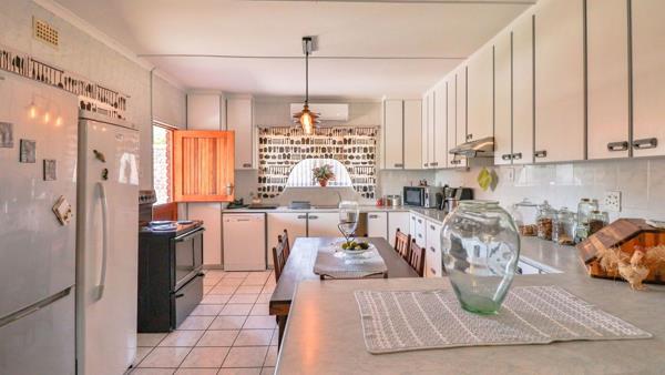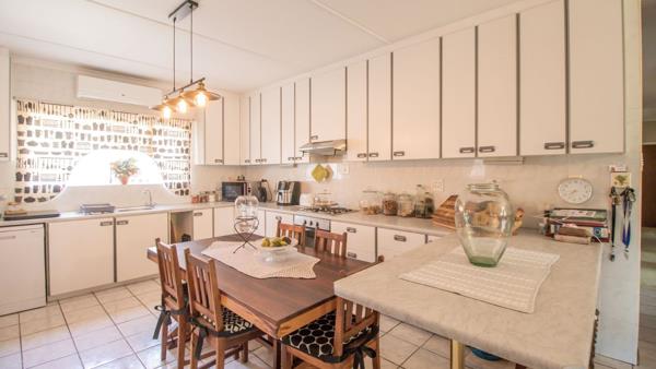 You are welcomed by a sun-soaked lounge that leads down a hallway to your open plan family room and spacious kitchen with a breakfast nook and a multitude of built-in-cupboards and air-conditioning for your convenience. From here, a free flow is created towards the entertainment area with a built-in braai, which in turn leads out to your outdoor entertainment area with a covered porch and built-in-braai in the comfort of your lush, private back garden. An established veggie patch promises fresh produce, lovingly grown in your own fertile soil.
