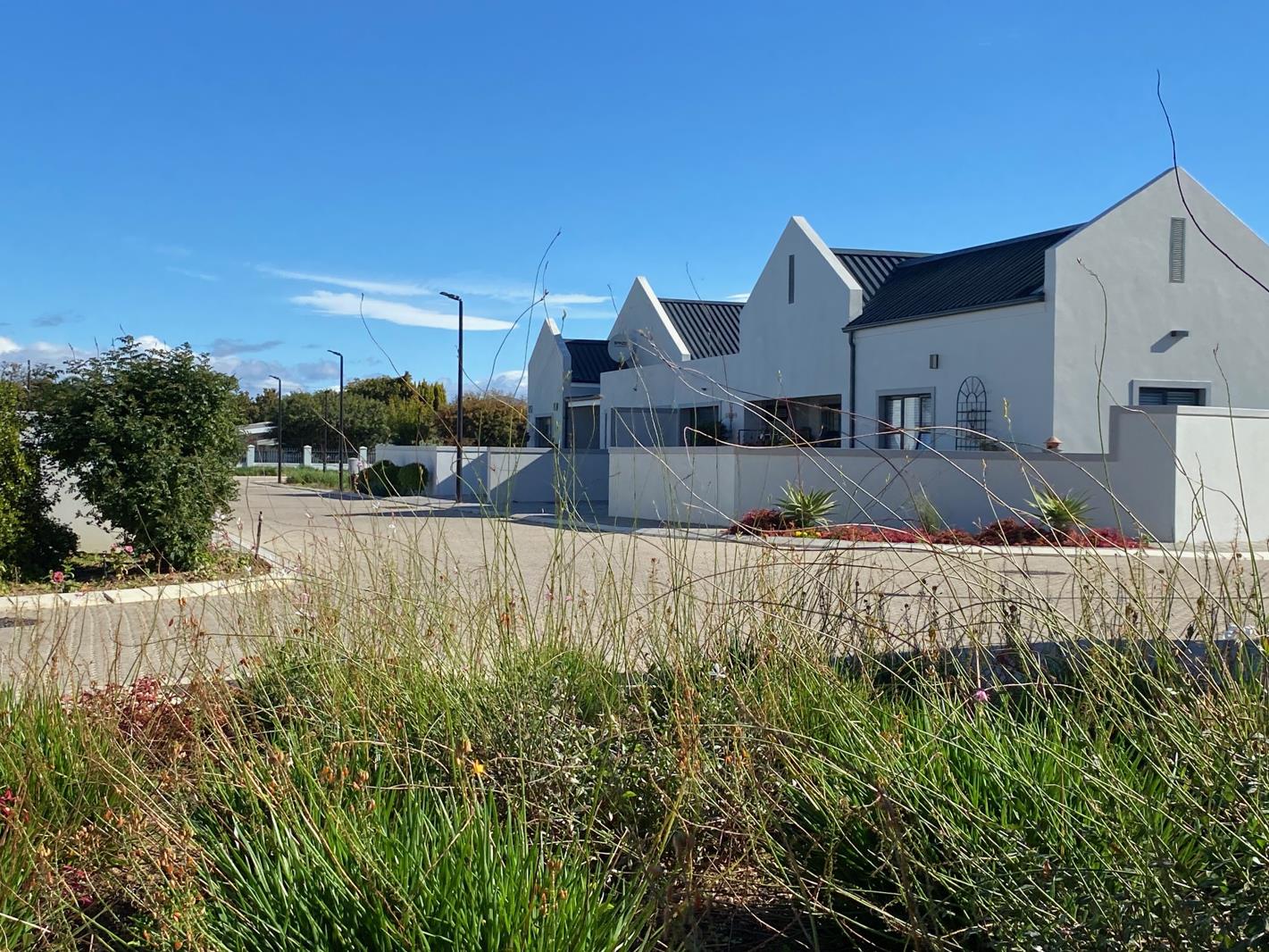 This picturesque village complex presents an ideal option for your new home, nestled within a secure, gated community in the charming town of Robertson, situated in the breathtaking winelands. This exceptional investment opportunity offers a serene countryside lifestyle in the stunning Breede Valley, with lovely views of the Langeberg mountains, and a vibrant community. You can select from two plans that are thoughtfully designed for open plan living. The residences feature two bedrooms and two bathrooms, complemented by open-plan living areas that extend to welcoming braai patios. The bedrooms feature laminate flooring and built-in wardrobes, and beautifully tiled bathrooms. The living areas have stunning, neutral large-format tiles that seamlessly create an sense of sophistication. The kitchen is adorned with quartz countertops, a spacious island, and cabinets that offer both workspace and functionality. High-quality Bosch appliances, including gas hobs, are also provided. Additionally, the homes are equipped with double garages featuring convenient laundry facilities and space for a workbench. This development is conveniently located near all amenities and is only a short hour and a half drive from Cape Town, providing effortless access to urban conveniences. Whether you are considering residential properties, investment packages, or any other aspect of this estate, I am here to provide assistance.