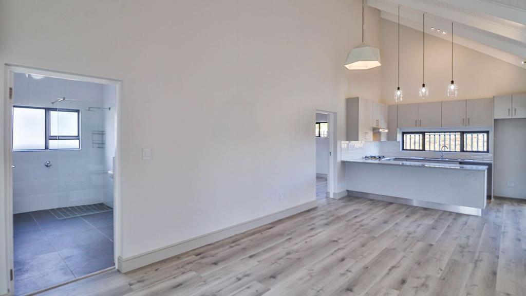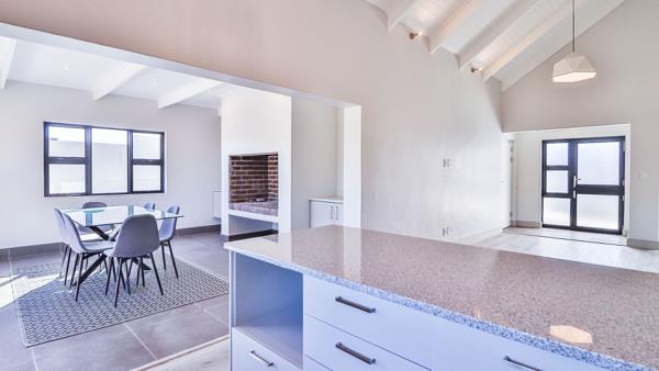A veranda with breath-taking mountain views greets you as you enter the property. The open-plan family room, kitchen and dining area with a built-in braai forms the heart of the home. The master bedroom is served by an en-suite bathroom, while the second bedroom has its own bathroom conveniently situated next to the room.