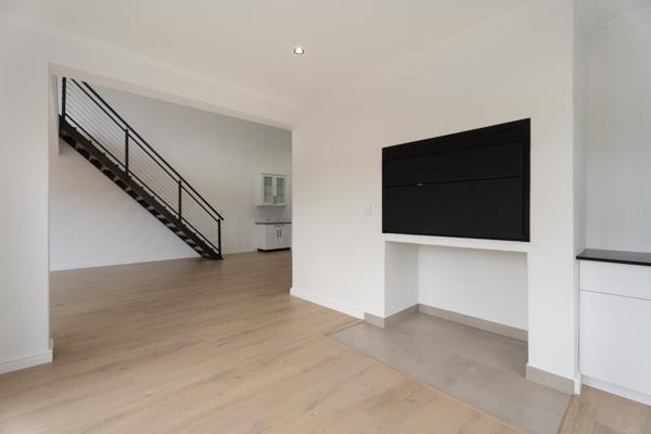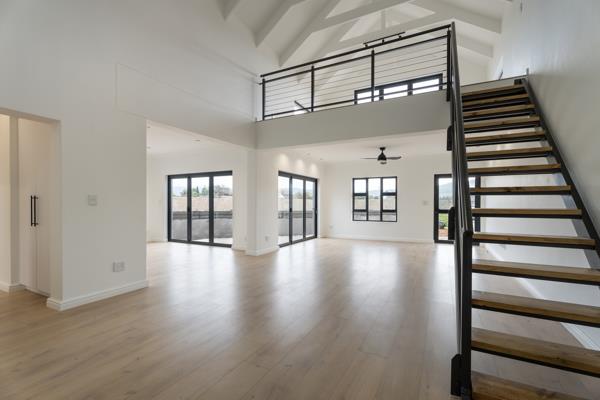 The large living area is open plan to the well-finished modern kitchen with a fitted oven and hob and separate laundryscullery. The additional reception room has a built-in braai and doors that lead out to the outdoor area. There are 3 bedrooms with 2 beautiful bathrooms, with the main bedroom en-suite. They have plenty of fitted wardrobes. The upstairs loft room is a versatile space and can be used as an additional bedroom, study, studio, or extra living room. The double garage is automated and, for convenience, leads directly into the house.