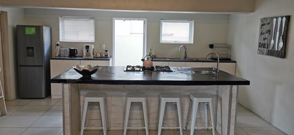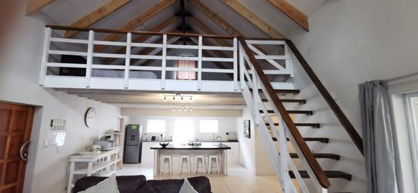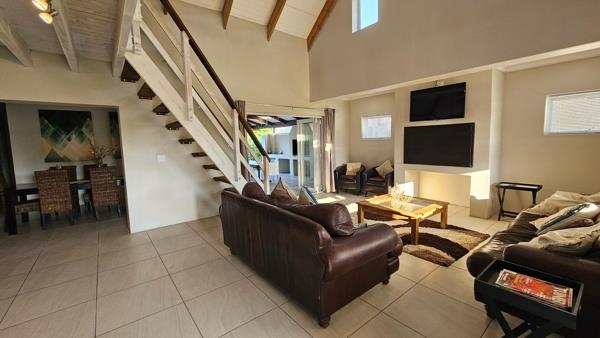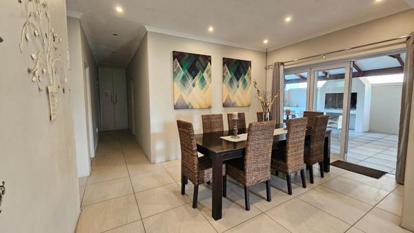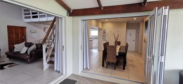 Folding doors in both the living and dining areas open onto a partially enclosed lekker kuier stoep complete with built-in braai and pull-down blindperfect for all-weather entertaining.