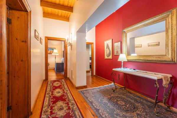 Discover this stunning older historic home that used to be a charming guest house, full of character and warmth. With high ceilings, spacious proportions, sash windows with shutters, and beautiful wooden floors, this immaculate property will truly steal your heart. It offers three generous en-suite bedrooms, with the master bedroom featuring a full en-suite bathroom. An elegant lounge opens onto a large undercover patio with a built-in braai, overlooking a manageable garden and a refreshing plunge pool. The separate dining room boasts a large open hearth fireplace, perfect for cozy gatherings. The Oregon pine kitchen is a delight to cook in, well-appointed with a large separate scullery and second cooking area.