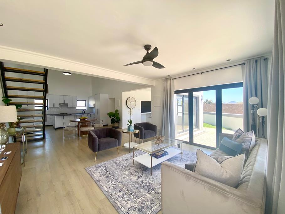 As you enter, the double garage with automatic doors leads you to a large scullerylaundry area for ultimate convenience. The beautiful double volume living area with an attached braai room opens onto the garden and patio with stackable doors, making it the perfect space for entertaining guests and enjoying outdoor activities. The loft area is a versatile space that can be used as an office or an additional guest room.