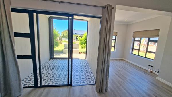 Situated within the sought-after Robertson Lifestyle Estate, this stylish two-bedroom home offers the perfect blend of comfort and easy estate living. Ideally positioned next to a greenbelt, the property enjoys a serene setting with beautiful views and added privacy. A welcoming entrance leads to a spacious open-plan lounge, dining, and kitchen area. The modern kitchen features quality finishes, and a separate scullery for convenience. The home comes equipped with a fridge, dishwasher, and washing machine. Elegant curtains are included throughout.