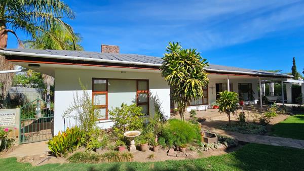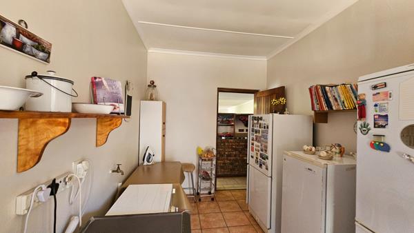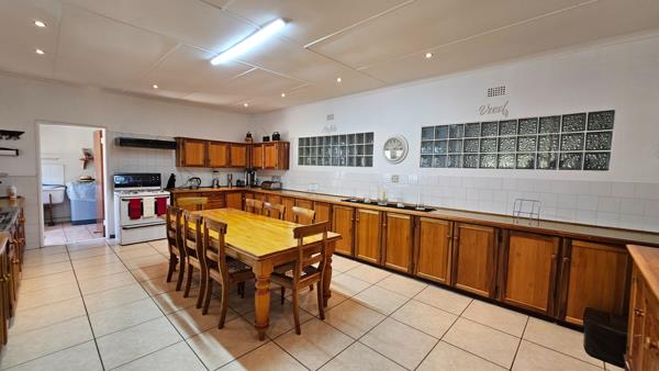 A charming home, where light-filled open-plan living areas seamlessly blend modern comfort with classic elegance. The main living space, ideal for a lounge-dining room area, exudes warmth and hospitality, while a separate lounge with a cozy fireplace provides a tranquil retreat for relaxation. The large farm-style kitchen, complete with solid wood cupboards and a spacious separate scullery, offers both functionality and style. Adjacent to the kitchen, a covered patio with a built-in braai invites outdoor gatherings, complemented by a courtyard featuring an additional braai area.