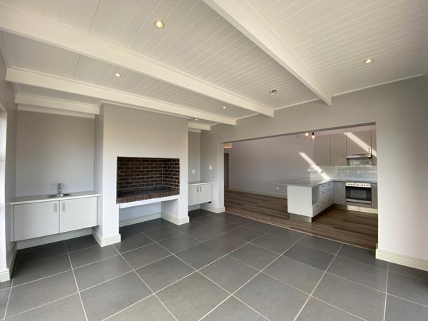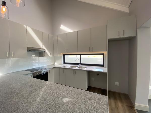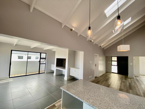 You can choose between two thoughtfully designed plans that embrace open-plan living. Each home features two cozy bedrooms and two bathrooms, along with spacious living areas that open up to charming enclosed braai patiosperfect for enjoying time with family and friends. The bedrooms feature warm laminate flooring and practical built-in wardrobes, while the bathrooms are fully tiled and comfortably spacious. The living areas are decorated with beautiful, neutral large-format tiles that add a touch of elegance. The kitchen is a dream! With sleek quartz countertops, a spacious island, and plenty of cabinets for storage, it offers both style and functionality. Youll also find high-quality Bosch ovens and gas hobs to make cooking a delight.