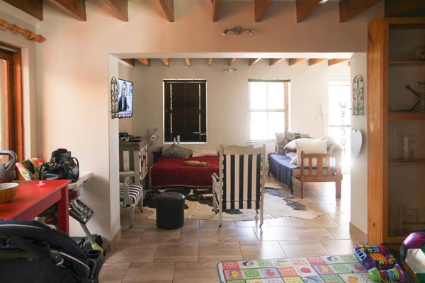 DUAL MANDATE This well-maintained double-storey home offers four spacious bedrooms, each with its own en-suite bathroom fitted with gas geysers, as well as a separate bachelor flat with an additional bedroom and bathroom ideal for guests, extended family, or rental income. The open-plan living and dining area flows into an enclosed braai room featuring a built-in bar and doors leading outside, creating the perfect all-season entertainment space. The country-style kitchen provides ample cupboard space and a dishwasher connection for added convenience.