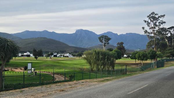 Views of golfers teeing off while the sun climbs the Langeberg peaks