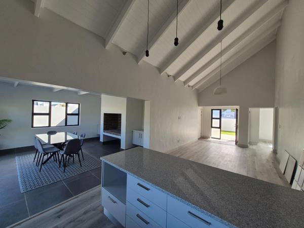 This immaculate two bedroom house has everything you would need. Built in cupboards in the bedrooms as well as an laundry in the automated double garage that leads into the home. An inviting open plan livingdining room that extends into the kitchen with under counter oven, gas hob stove. From the kitchen you find the indoor braai room with doors leading to your courtyard, with an amazing view of the Langeberg mountains.