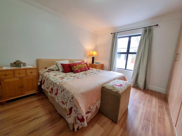 Two of the three bedrooms have built-in cupboards, while an ensuite bathroom offering a shower and a bath adjoins the master bedroom. A second bathroom is conveniently placed for guests.