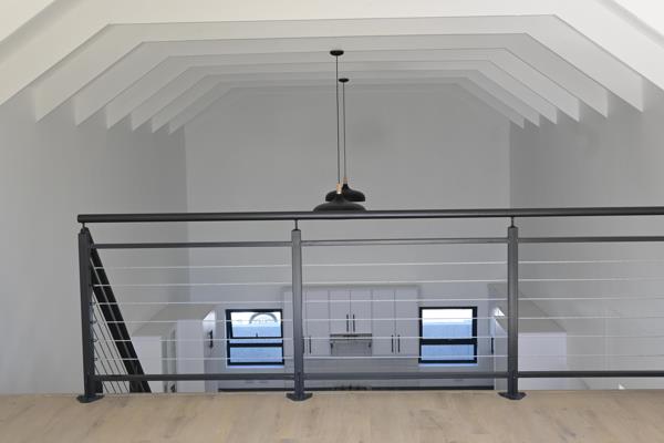 The decorative staircase leads to the north-facing versatile mezzanine floor, where the large balcony, and two picture windows offer pretty views onto a park and mountains in the distance, ideal for an additional lounging area or office.