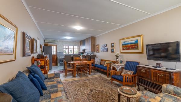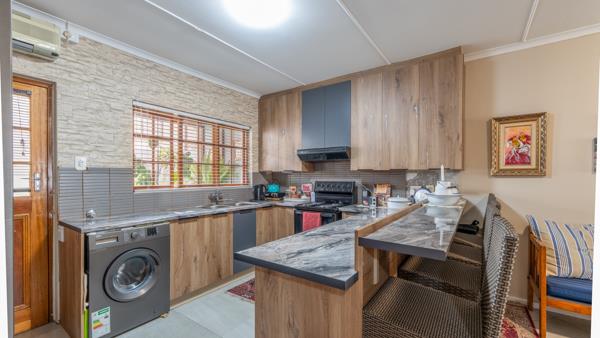 Key Features: 2 Spacious Bedrooms, 2 Modern Bathrooms (main en-suite), Open-Plan Kitchen, Dining & Lounge with Air Conditioning for ultimate comfort, single garage with auto door, covered back stoep with irrigated garden and enclosed patio with basin.
