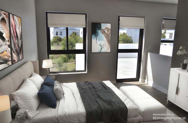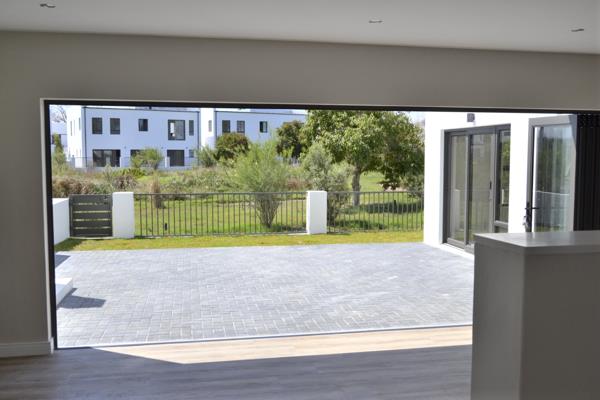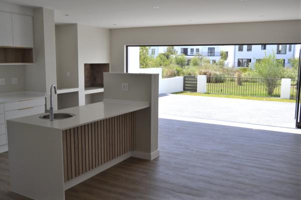 Downstairs, a gourmet kitchen with premium finishes flows into open-plan living and dining areas, opening to a covered patio, braai, and garden ideal for entertaining.