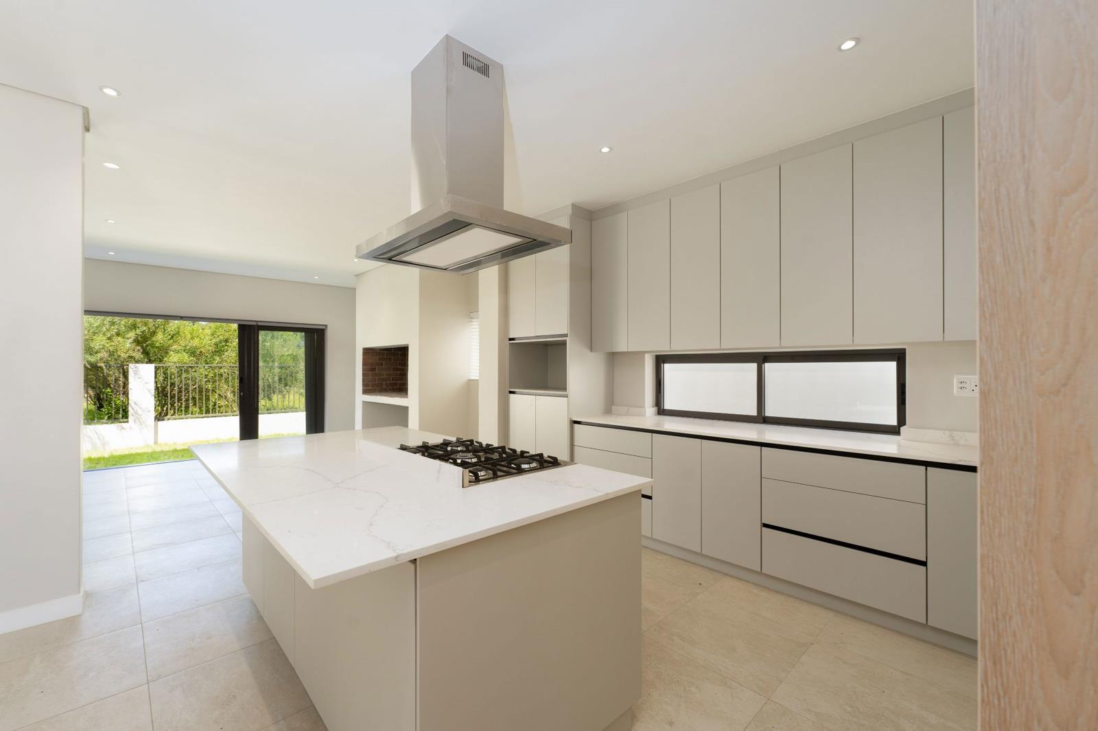 Step through the double-volume entrance, where sunlight pours into the open-plan kitchen, dining, and lounge areas, creating a bright and inviting atmosphere. The built-in braai and stacker doors open seamlessly to your private garden, offering the perfect indoor-outdoor flow for entertaining or relaxing.