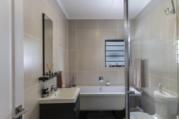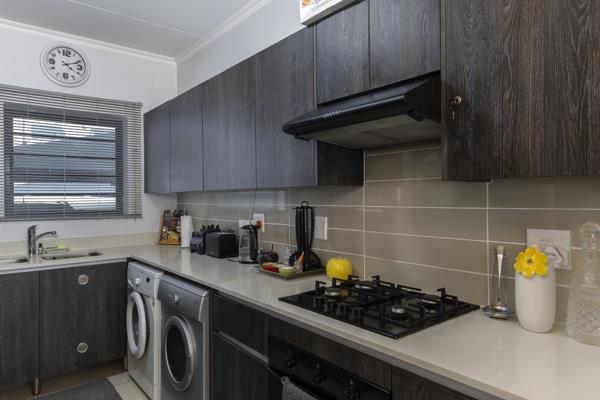 The modern kitchen is fitted with a gas hob, extractor fan, and electic oven, and comes fully equipped with quality appliances inclucing a Defy fridge, Defy front loader washing machine, and Defy dishwasher. All bedrooms have built in cupboards, with the main bedroom featuring an en suite bathroom with a shower. The family bathroom is a full bathroom with bath and shower.