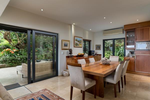 Tucked away at the end of a quiet cul-de-sac in the highly sought-after Boskloof Eco Estate, this remarkable home offers a rare lifestyle defined by peace, privacy, and natural beauty. With its idyllic position along the estates tranquil dam, the setting feels like something out of a storybookwhere early morning paddles and golden-hour swims become part of your daily rhythm. A private jetty leads you straight to the water, while expansive glass doors invite the outside in, creating a constant connection with the scenic surroundings. Whether its coffee on the balcony or evening gatherings as the sun dips behind the ocean, every corner of this home is designed to celebrate its spectacular location.